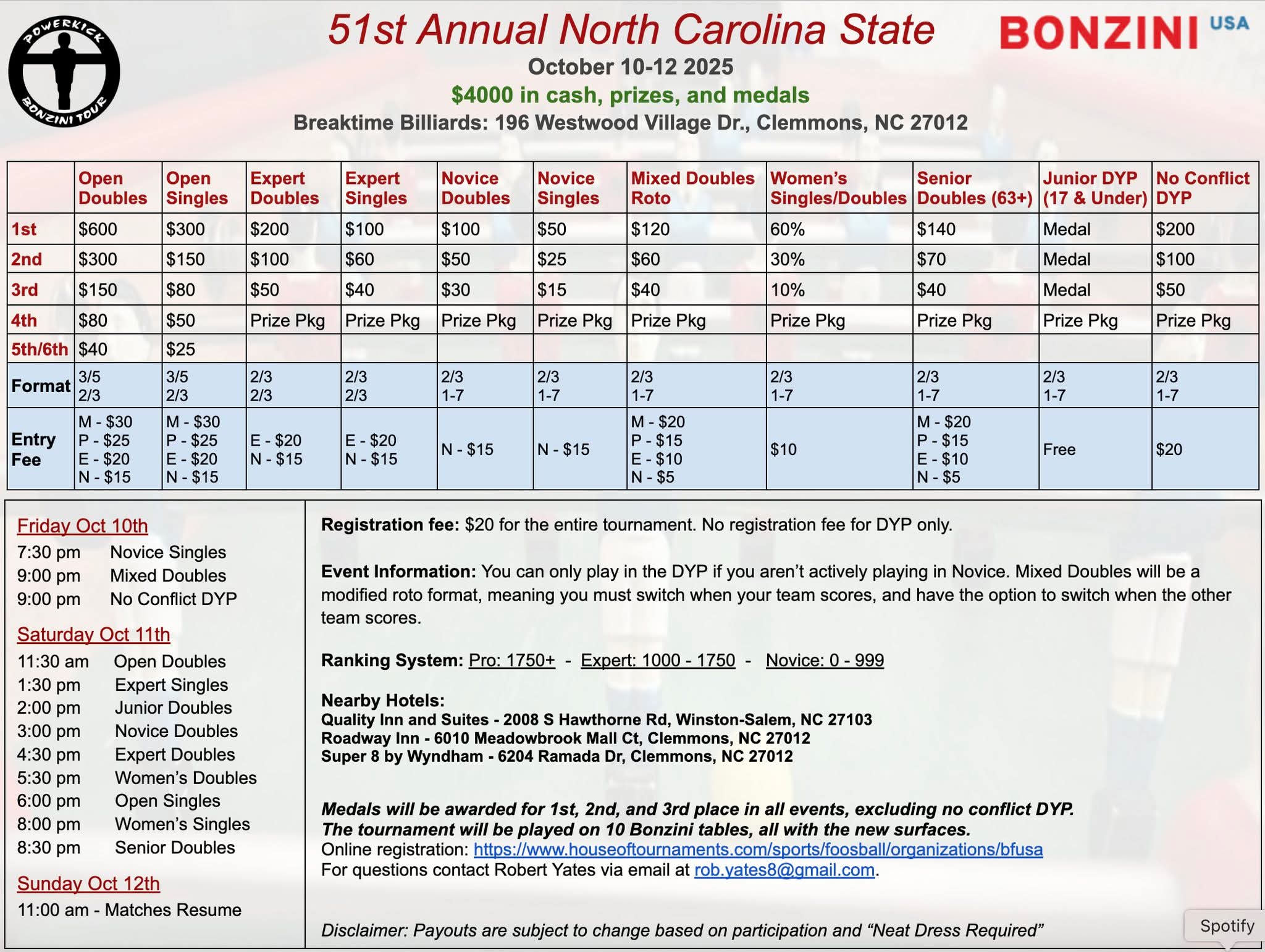 email: North Carolina Foosball NC Foosball results by Everplay, posted soon! |