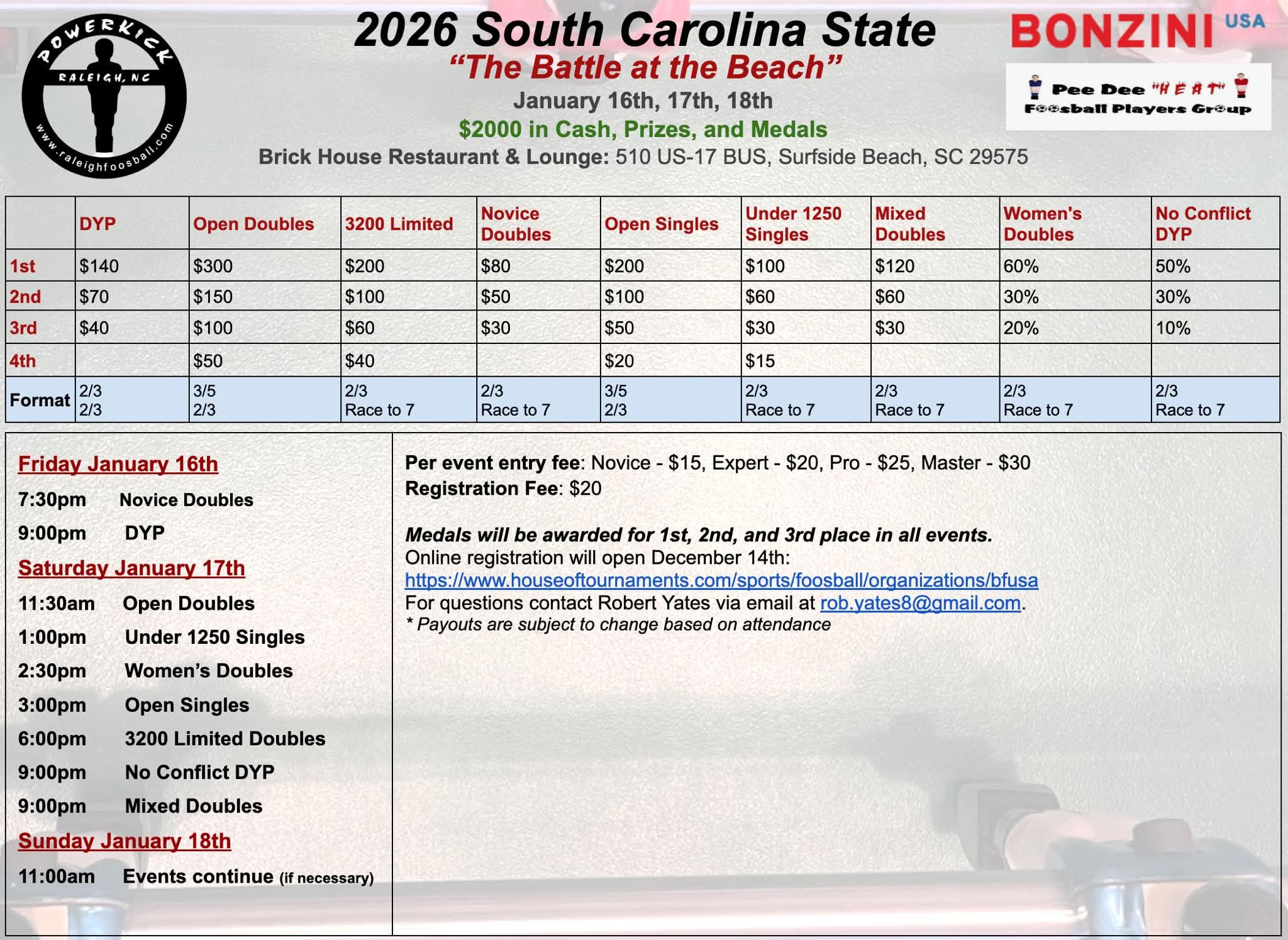 Dawid Kala Danielle Dunn 503-939-0485 david@thebettergame.co results will be tracked on www.Houseoftournaments.com |